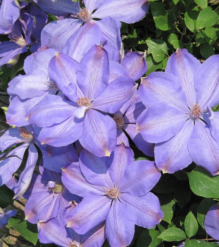 Клематис Mrs Cholmondeley - исключительно долго и обильноцветущий сорт. Цветки крупные, светло-лавандово-голубые с лиловым оттенком, временами полумахровые, тычинки светло-коричневые. Слабообрезанный весной (2 группа обрезки) он цветёт почти бесперерывно с мая по август. Если обрезка была сильная, цветёт июль-сентябрь.