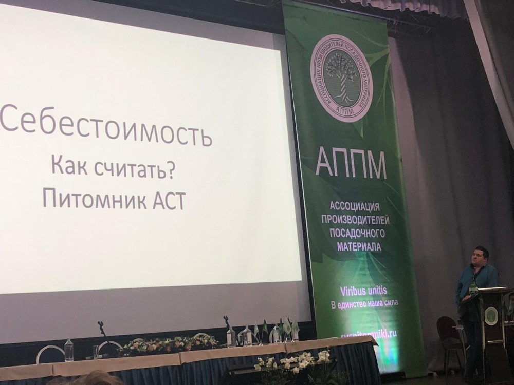 Водаков Сергей Анатольевич, директор питомника АСТ, выступил с докладом перед коллегами. Темой выступления стал способ расчета себестоимости выращенной продукции в нашем питомнике.