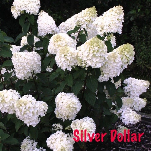 Гортензия метельчатая Silver Dollar - великолепно смотрится в саду благодаря своим плотным пирамидальным соцветиям белого цвета. Неприхотливый сорт отличающейся высокой зимостойкостью. |