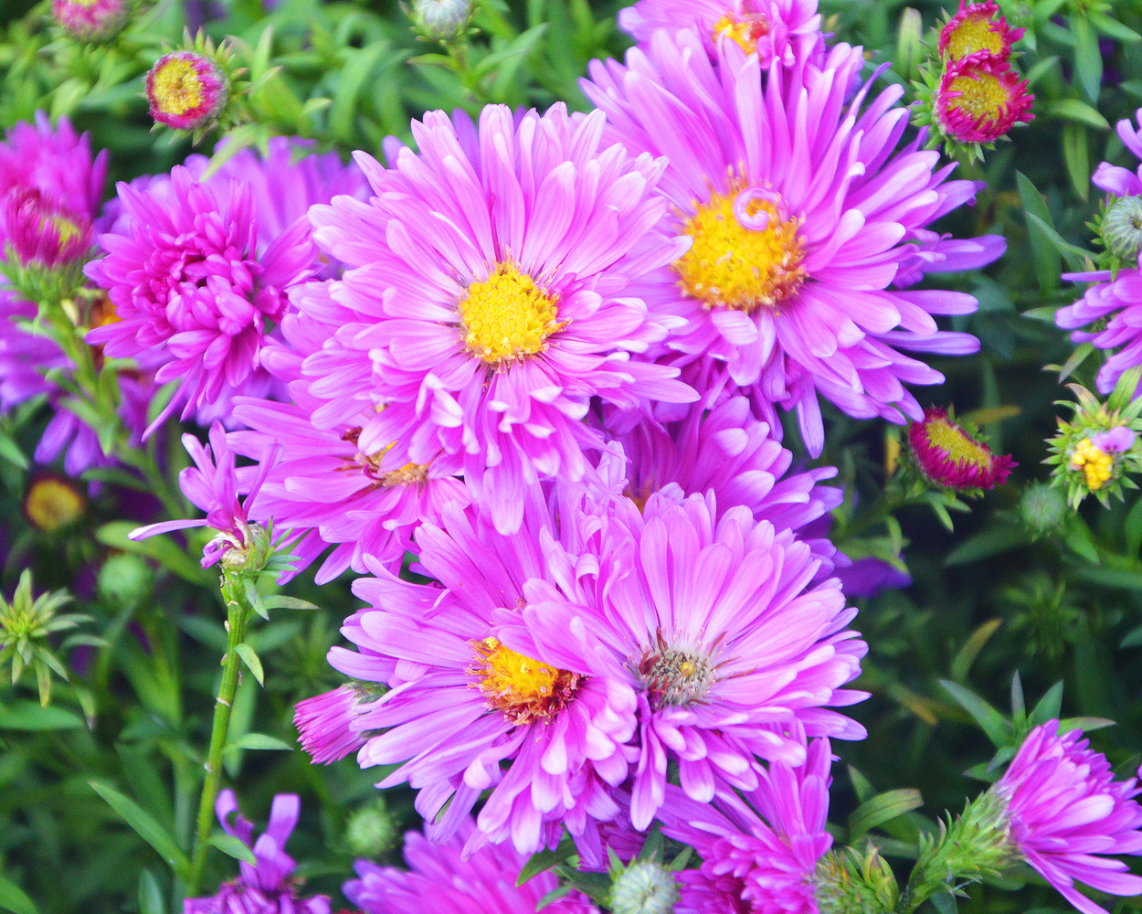 Цветки яркие, пурпурно-фиолетовые, полумахровые, сильно контрастируют с тёмно-зелёными листьями. Цветение очень обильное, в сентябре-октябре. Кустик подушковидный, высотой 30-40 см. Сорт засухоустойчивый. Растение прекрасно смотрится как в одиночных, так и групповых посадках.