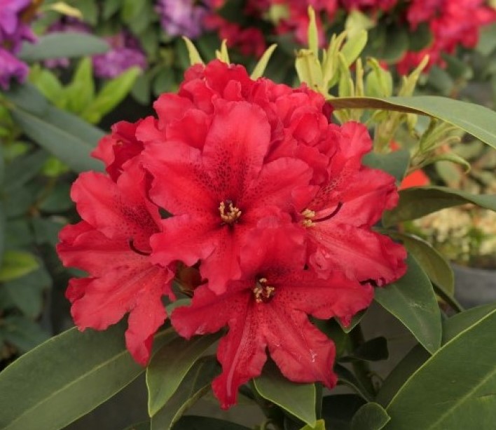 Цветки воронковидной формы, широко открытые, темно-красные, с отчетливым красно-черным пятном на одном лепестке, собраны по несколько в эффектные верхушечные соцветия. Цветет интенсивно с конца мая до середины июня. Через 10 лет он вырастает примерно до 1,2 м в высоту и 1,4 м в ширину. Листья ланцетные, длиной около 10 см, темно-зеленые и тусклые.