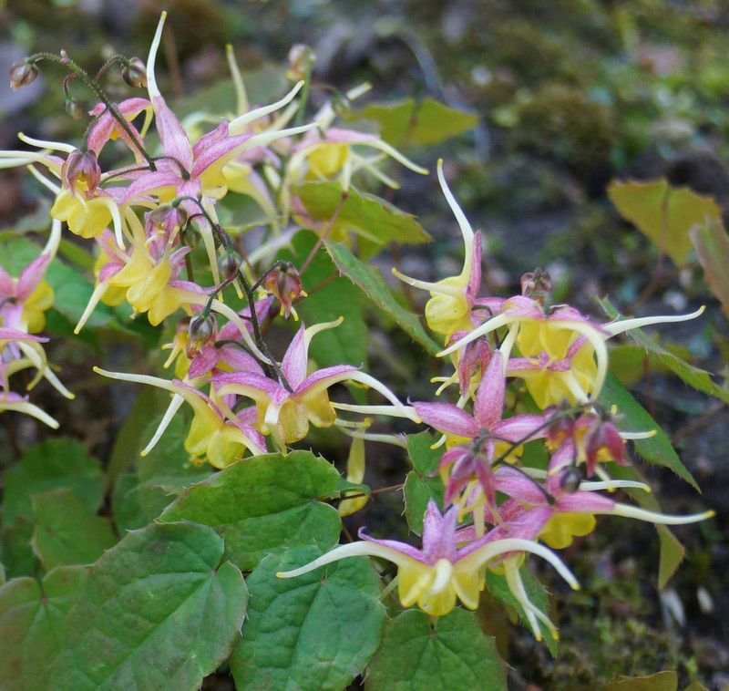 Цветки золотисто-жёлтые с бледно-розовыми прицветниками. Лепестки широкие. Соцветия свисающие. Цветение длительное. Листья вечнозелёные, короткие, глянцевые, тёмно-зелёные с зазубренными краями, высотой 25 см. Цветоносы высотой 35 см. Почва плодородная, влажная, дренированная, зимой – сухая.