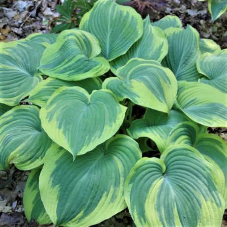 Классическая хоста с большими сине-зелеными сердцевидными листьями, окаймленными широкой кремово-белой полосой. Цветы бледно-сиреневые. Хоста с каждым годом становится всё пышнее и ярче.