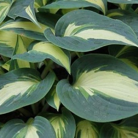 Листья плотные, бархатные, зелёно-голубые с узким центром, который изменяет цвет от бледно-жёлтого до белого. Цветки лавандовые. Эффектный сорт, подходит для декора газонов, водоемов, отлично смотрится в одиночных и групповых комопзициях