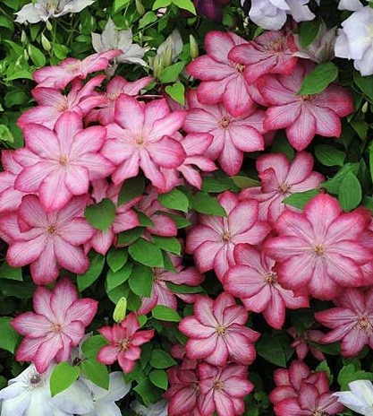 Клематис Либерти - абсолютно новый сорт голландской селекции. Обильноцветущий клематис, с довольно крупными цветками очень привлекательной окраски: лепестки светло розовые с бордовым жилкованием у основания, и ярко-вишневым кантом, волнистые по краю. Невероятно эффектные! Цветет в мае - июне. Цветки диаметром 10-12 см. Тычинки красно-пурпурные, светлые в основании.  Высота 200 см. На зиму в средней полосе требуется обязательное укрытие