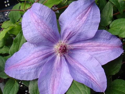 Клематис с розово-лилово-голубоватые лепестками, посередине более насыщенно-розовая полоска и контрастные красно-коричневые тычинками. Первое обильное цветение в мае и июне, повторно зацветает после обрезки в июле и августе. Может высаживаться у любых садовых опор; также растение может быть высажено у деревьев или кустарников