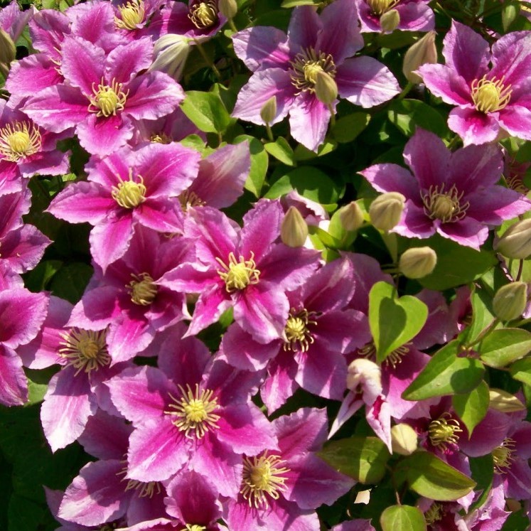 Клематис с лилово-розовыми цветами, с тёмно-розовой полоской посередине у основания лепестков, и красивыми жёлтыми тычинками. На прошлогодних побегах в июне появляются полумахровые цветки, а на побегах этого года, летом, одиночные цветки. Умереннорастущий. Цепляется за опоры