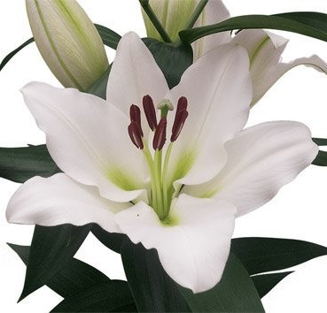 Лилия имеет сильный аромат. Цветок белый с зеленцой у центра. Высота растения: 120 см. Период цветения: июль-август.