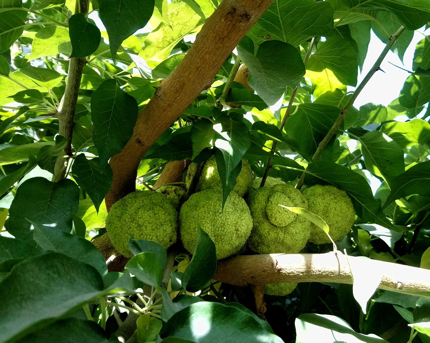 Двудомное листопадное дерево до 20 м в высоту. До 15-20 лет растет быстро. В возрасте 40 лет в Центральной Азии достигает высоты 13-15 м и 40-45 см в диаметре. Крона густая, нерегулярно округлая, раскидистая, открытая. Ствол стройный, покрыт темно-бурой трещиноватой корой. Ветви коленчато-изогнутые, оранжево-бурого цвета, блестящие. Побеги зеленые, сначала опушенные, позже голые, покрыты пазушными колючками до 2,5 см в длину. Сок молочно-едкий. Древесина золотисто-желтая, плотная, гибкая, крепкая, очень красивая.