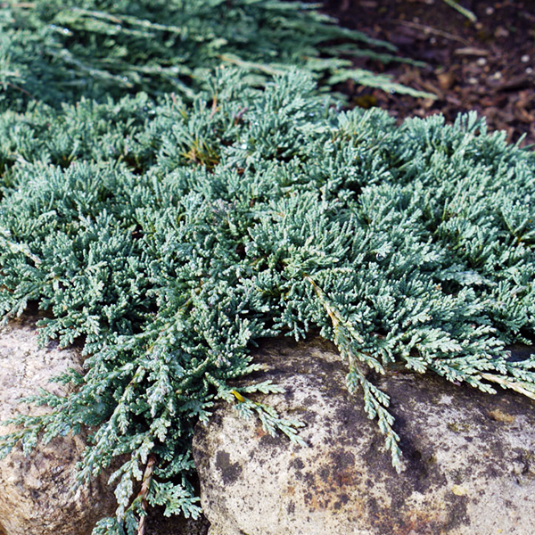 Совершенно плоская форма с ползучими, прилегающими к земле, очень плотными побегами, растёт медленно. Хвоя серебристо-голубая. Цвет хвои зависит от сезона, летом она зеленовато-голубая, а зимой темнеет и становится сливово-фиолетовой. Ветви украшены небольшими (5-7 см) шишкоягодами голубого оттенка. Идеально подходит для альпинариев, каменных ваз, в группах создаёт красивый вечнозелёный покров. Карликовый кустарник легко переносит пересадку и заполняет открытые участки почвы длинными хвойными ветвями.
