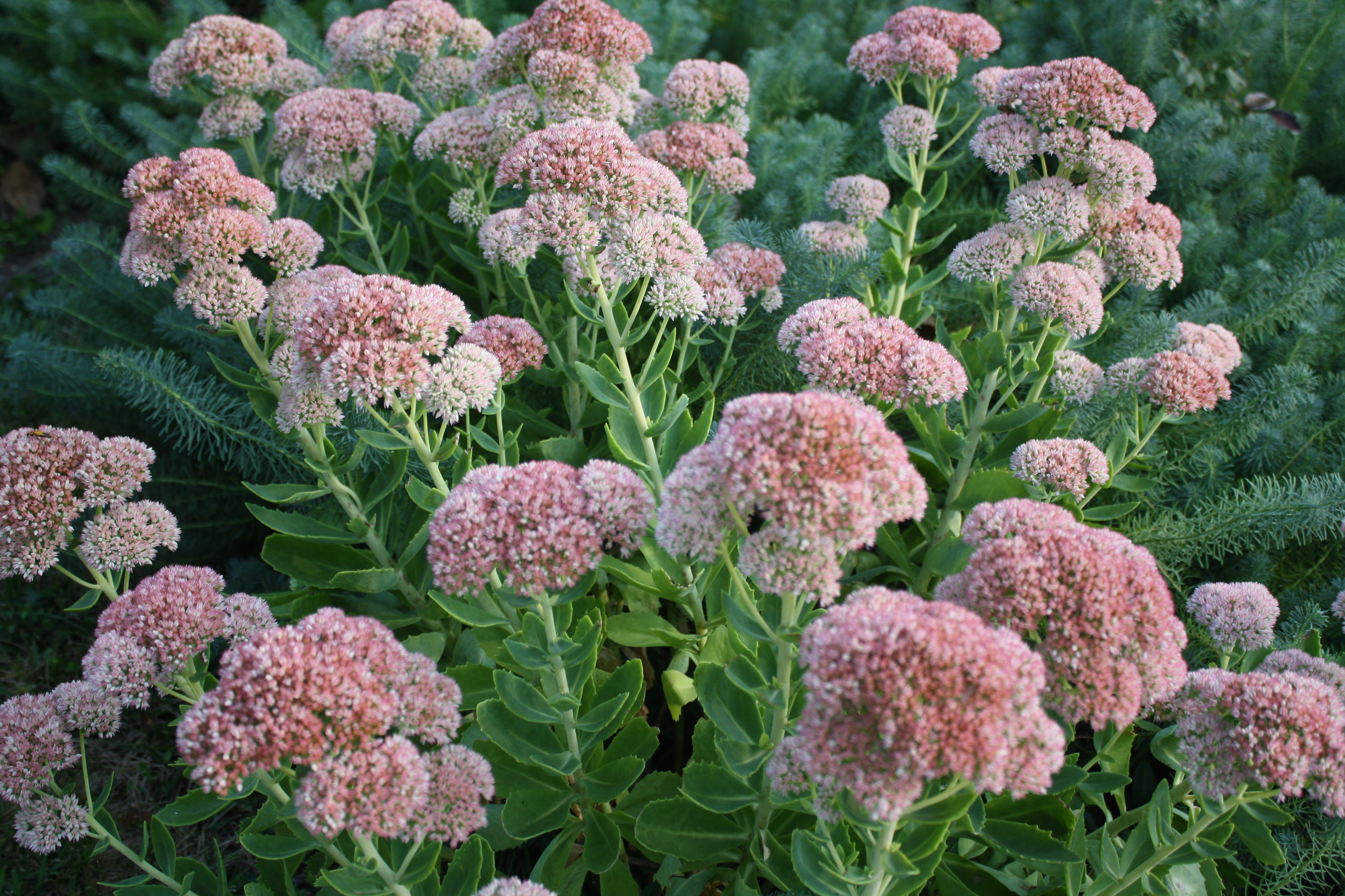 Шикарные соцветия-щитки кремово-зеленых тонов, эффектно контрастируют с темно-зеленой листвой и красными стеблями. Великолепно смотрится на переднем плане цветников, в рокариях и бордюрах
