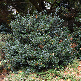 Женская форма, вечнозелёный кустарник h=2 м, шир.1,5-2 м, цветёт в мае-июне, при наличии мужского опылителя, например, сорта «Blue Prince» образует яркие красные плоды, которые остаются на растении всю зиму, листья сильно глянцевые, глубоко зелёные, молодые - почти фиолетово-синие, растёт медленно, предпочитает тенистые места с лёгкой, богатой, хорошо увлажнённой почвой, зимостоек, используется для посадки в живых изгородях и для одиночных посадок, хорошо отрастает после стрижки.