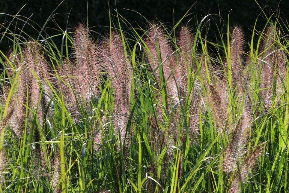Очень теплолюбивый декоративный злак. Исключительно элегантно смотрится благодаря своим нежным пушистым соцветиям тёмно-коричневого цвета. Соцветия напоминают гусеницу или бутылочную щётку. Цветки вначале кремово-розовые. Цветёт в августе-октябре. Цветоносы высотой 90 см. Листья высотой 60 см, узкие, линейные, дуговидные, тёмно-зелёные, осенью – с оранжево-красными оттенками. Место тёплое. Почва питательная, умеренно влажная, дренированная. В умеренном климате рекомендуется выращивать в контейнерах и на зиму убирать в помещение или укрывать листьями или лапником. Зона 6-5 (до -18-23ºС).