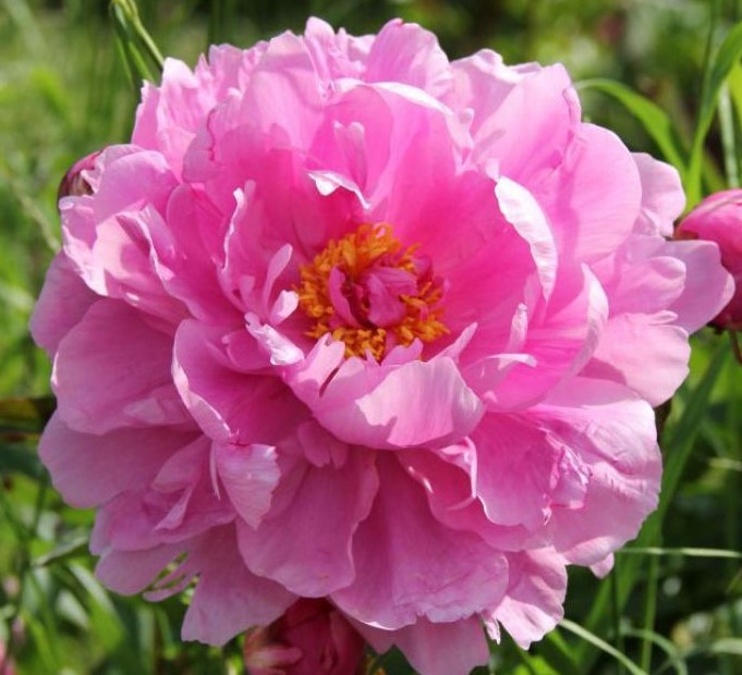 Пион с розовидной формой цветков, с красивым темно-розовым цветом. Сильно выделяется на фоне тёмно-зелёной листвы. Цветение очень обильное, куст компактный.