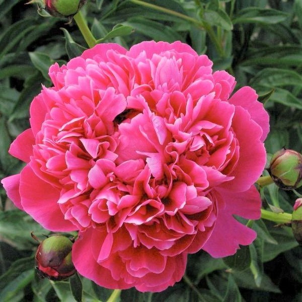 Пион с махровыми соцветиями окрашенными в ярко-красный цвет с малиновым оттенком. Куст компактный с толстыми и прочными стеблями. Олицетворение пылкой любви и страсти.