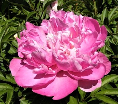 Пион сложен из правильно расположенных вогнутых лепестков, как из чешуек. Цвет розовый с перламутровым оттенком. Аромат нежный, приятный.