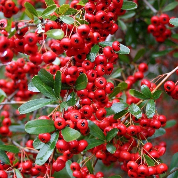 Быстрорастущий вечнозеленый кустарник с продолговатыми блестящими темно-зелеными кожистыми листьями и длинными шипами. Хороша в любое время года. Весной ветви покрываются душистыми кремовыми цветками, а осенью – гроздьями блестящих красных ягод. Плоды сохраняются всю зиму. Особенно эффектно смотрятся под снегом. Пираканта является не только замечательным украшением садового участка, но и благодаря шипам, его своеобразным защитником. Со временем, живая изгородь из пираканты становится густой и практически непродуваемой, предохраняя участок от ветра, шума и незваных гостей.