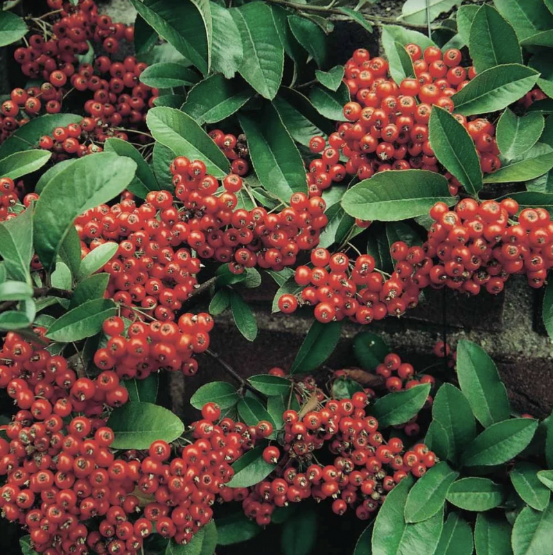 Пираканта Мохави - жизнестойкий пряморастущий вечнозелёный кустарник высотой 4 м; в ширину разрастается до 5 м. Листья овальные, темно-зеленые, длиной до 6 см. Цветки распускаются в начале лета. Плоды красные, диаметром 9 мм. Плодоношение продолжительное.Растение хоть и не вьющееся, но закрепляя его побеги можно выращивать на заборах, стенках, арках и других конструкциях, при этом длина плетей может достигать 3-5 метров. Хорошо переносит стрижку.