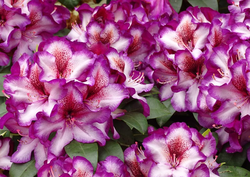 Является одним из новейших гибридов рододендрона и впечатляет прежде всего впечатляющим разнообразием окраски цветов! Белые цветки имеют элегантную темно-пурпурно-фиолетовую кайму,а также бордово-желтый рисунок на верхнем лепестке.