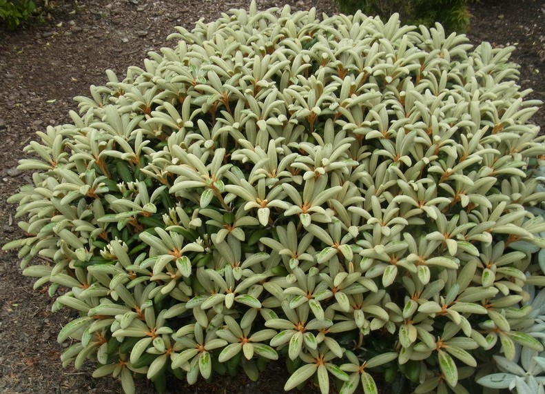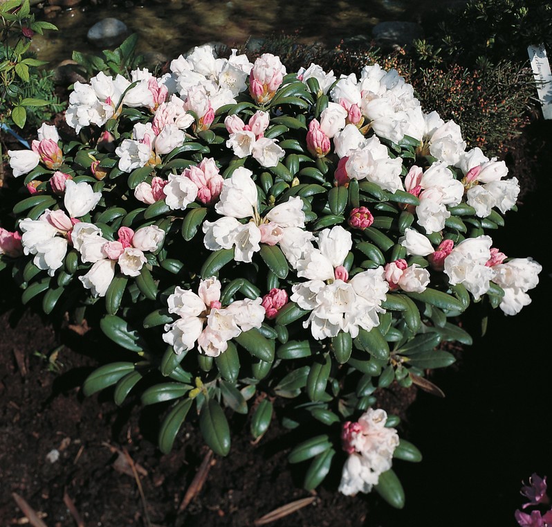 Бутоны нежно-розовые, распустившиеся прозрачно-белые, внутри цветков колокольчатой формы, каждый на верхних лепестках украшен небольшим зелено-желтым рисунком. Цветонос 7 см высотой, 10 см шириной, усеянный 9-11 цветками, диаметр одиночного цветка 4-4,8 см.Кусты плотные и компактные, уже в молодом возрасте необычайно сильно цветущие, молодые листья бело-войлочные, затем становятся тёмно-зелёными, на нижней стороне с красивым плотно-свалявшимся светло-коричневым волосяным покровом, сорт имеет золотую медаль и другие награды.