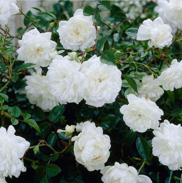 Куст раскидистый с очень ветвистыми колючими побегами, которые со временем провисают под тяжестью цветов. Вырастает 50-70 см в высоту и с возрастом может достигать более 1 метра в ширину. Листва плотная, мелкая, ярко-зеленая, глянцевая. Цветы мелкие (3-4 см в диаметре), махровые (40-50 лепестков), чистого белого цвета. Обладают очень легким ароматом. Появляются в больших воздушных ниспадающих кистях по 10-40 цветков в каждой. Цветение очень обильное, повторное, практически непрерывное, продолжительное (в течение всего лета и до заморозков). Сорт морозостойкий и устойчивый к заболеваниям. Роза White Fairy идеально подходит в качестве почвопокровного растения, при должном уходе и правильном формировании возможно выращивание на невысоком штамбе, прекрасный выбор для патио или посадки в миксбордер. Легко сочетается с другими растениями.