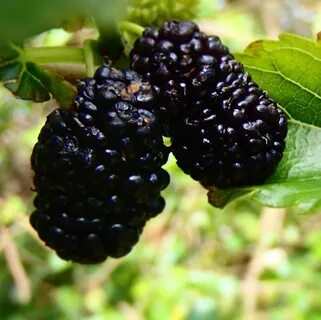 Листья жёсткие, широкояйцевидные, с глубоким сердцевидным вырезом у основания. Соплодия компактные, продолговатой формы, глянцевые, чёрно-фиолетовые и чёрные, созревают в августе-сентябре и быстро опадают. Вкус приятный, сладковато-кислый с ароматом. Плодоношение обильное.
